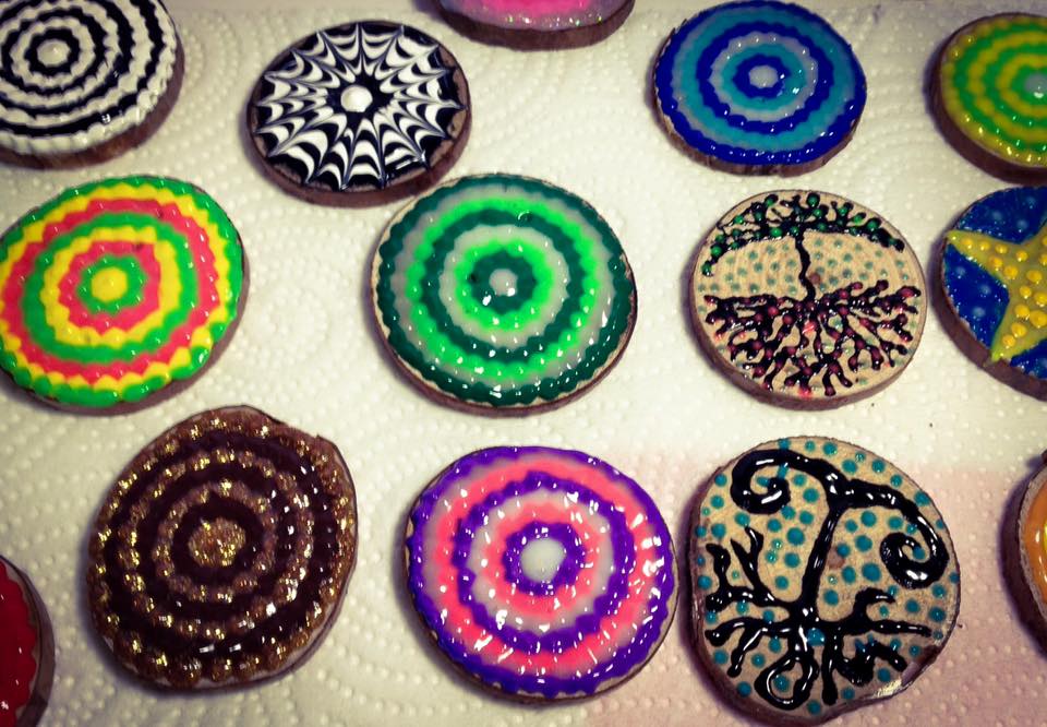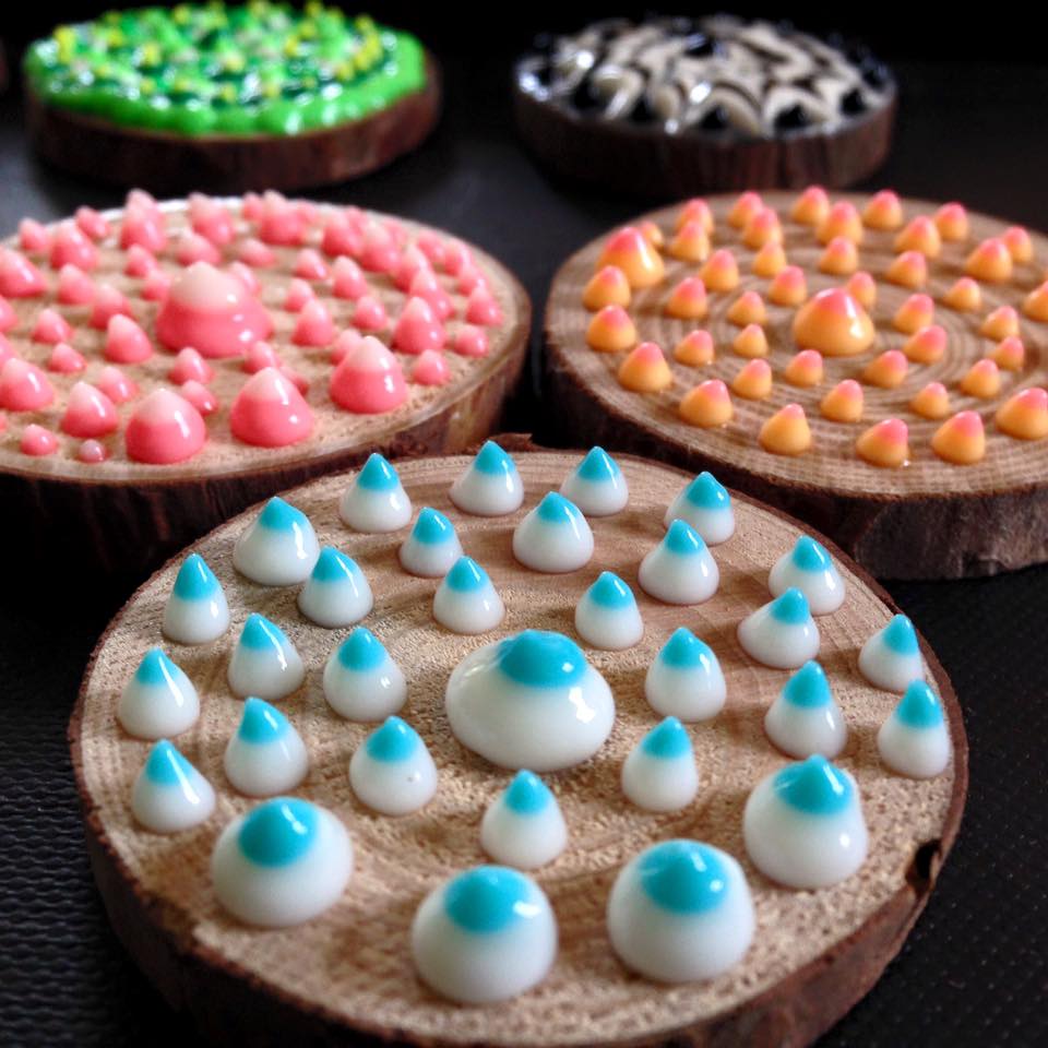 I created these Amulets in 2016 when a surge of “I absolutely am not waiting one more day to work on a creative project, I am desperate, please give me paint and whatever else is around”. Wood was, and these Amulets were born. I sold quite a lot of them, kids specially loved them. I love them.
